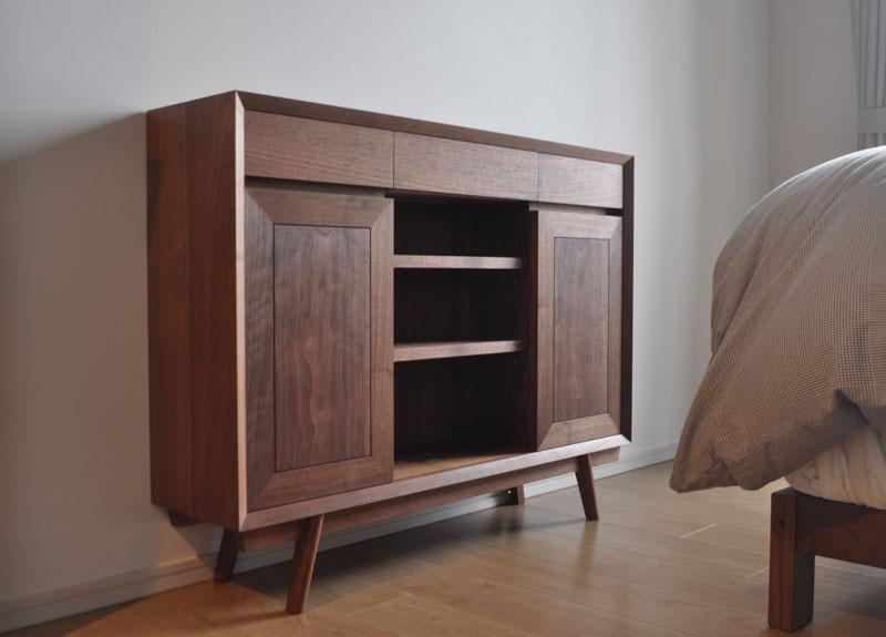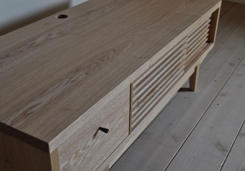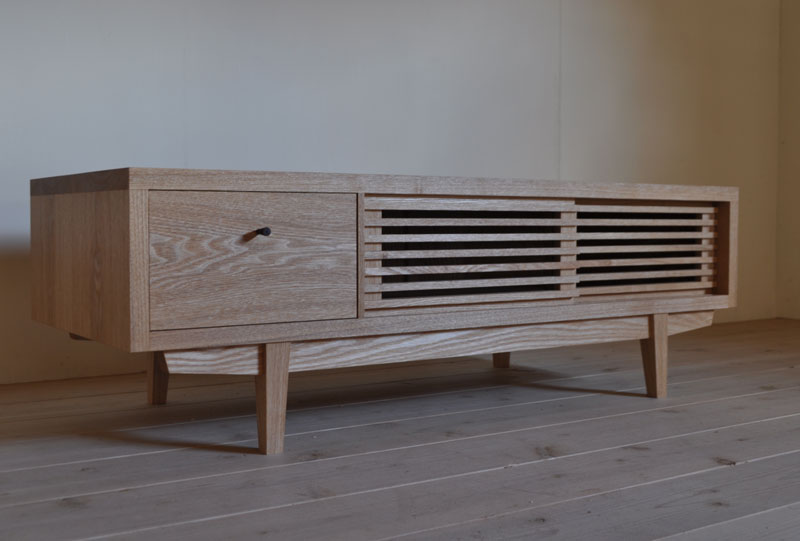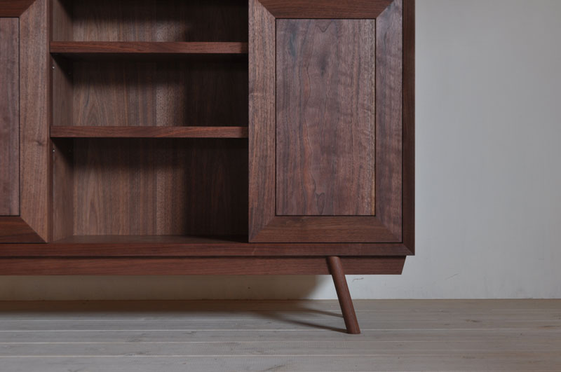 重い見た目にならない範囲でどしっとした安定感を出したかったので、箱部の板厚を厚めに取り、脚はやや太めのストレートにしました。
