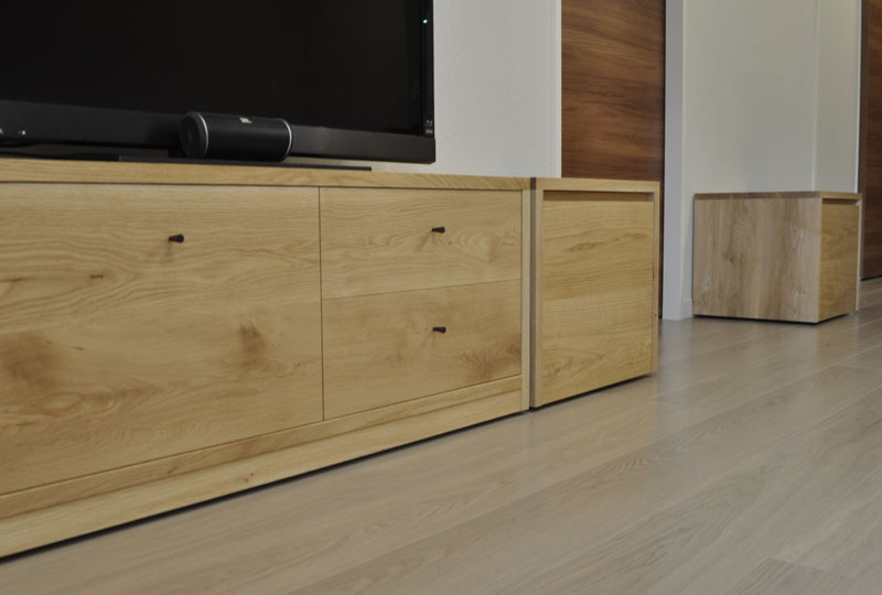 引出し収納のテレビ台と引出しのボックス型収納。