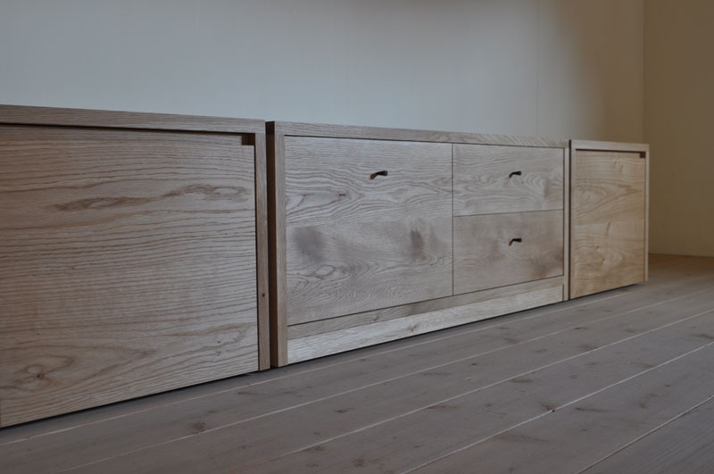 タモ材で製作した引出し収納です。