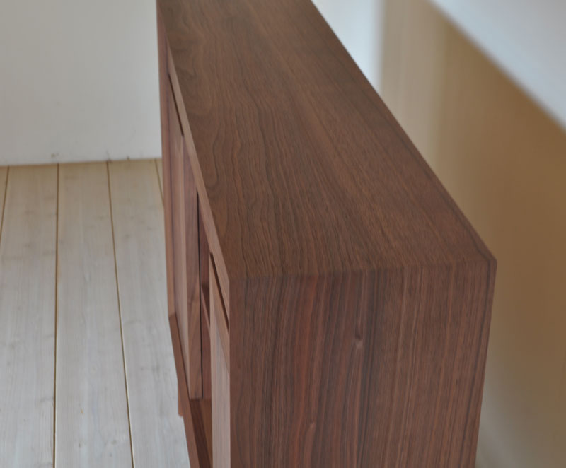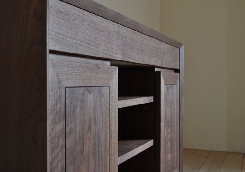 ウォールナットが美しく映えるレイアウトにする事と、収納として使い勝手が良い事を前提とした設計です。