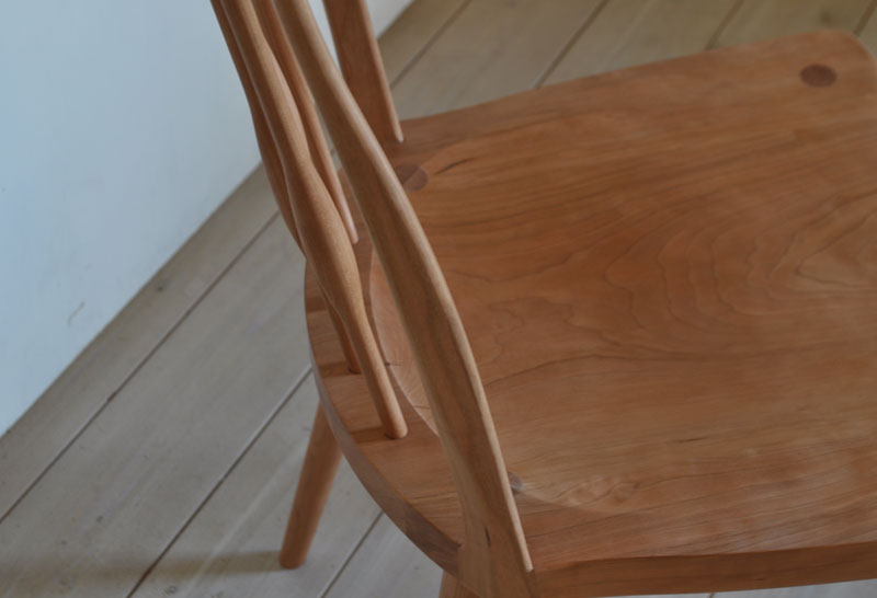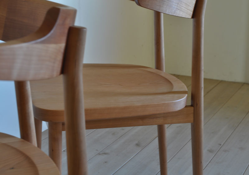 クッションとのコントラストがある椅子として設計をしましたが、無垢の座面も木目や質感が活かされて魅了される風合いになりました。